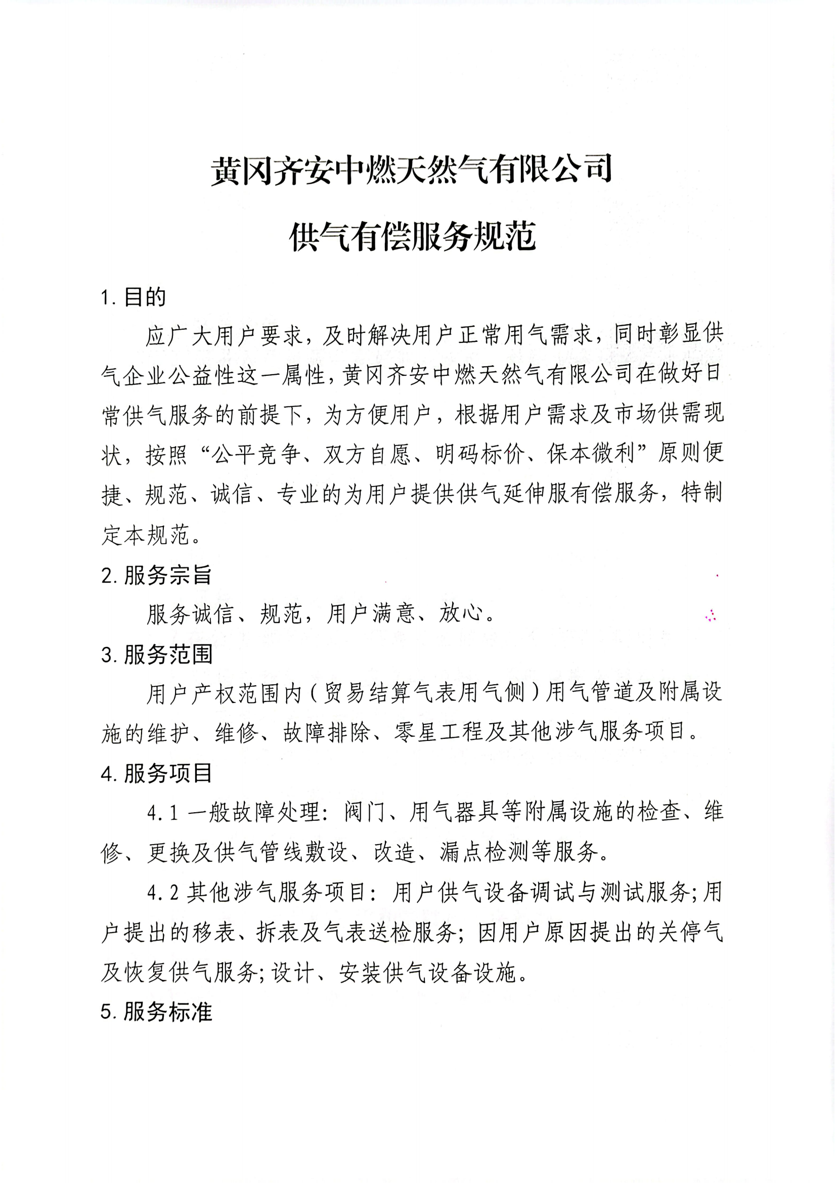 黃岡齊安中燃天然氣有限公司供氣有償服務規范(試行)